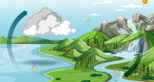 Siklus air atau siklus hidrologi dimulai dari proses evaporasi—saat panas matahari menguapkan air dari laut, sungai, dan danau menjadi uap air yang naik ke atmosfer. Tumbuhan juga berperan melalui transpirasi, melepaskan uap air ke udara.